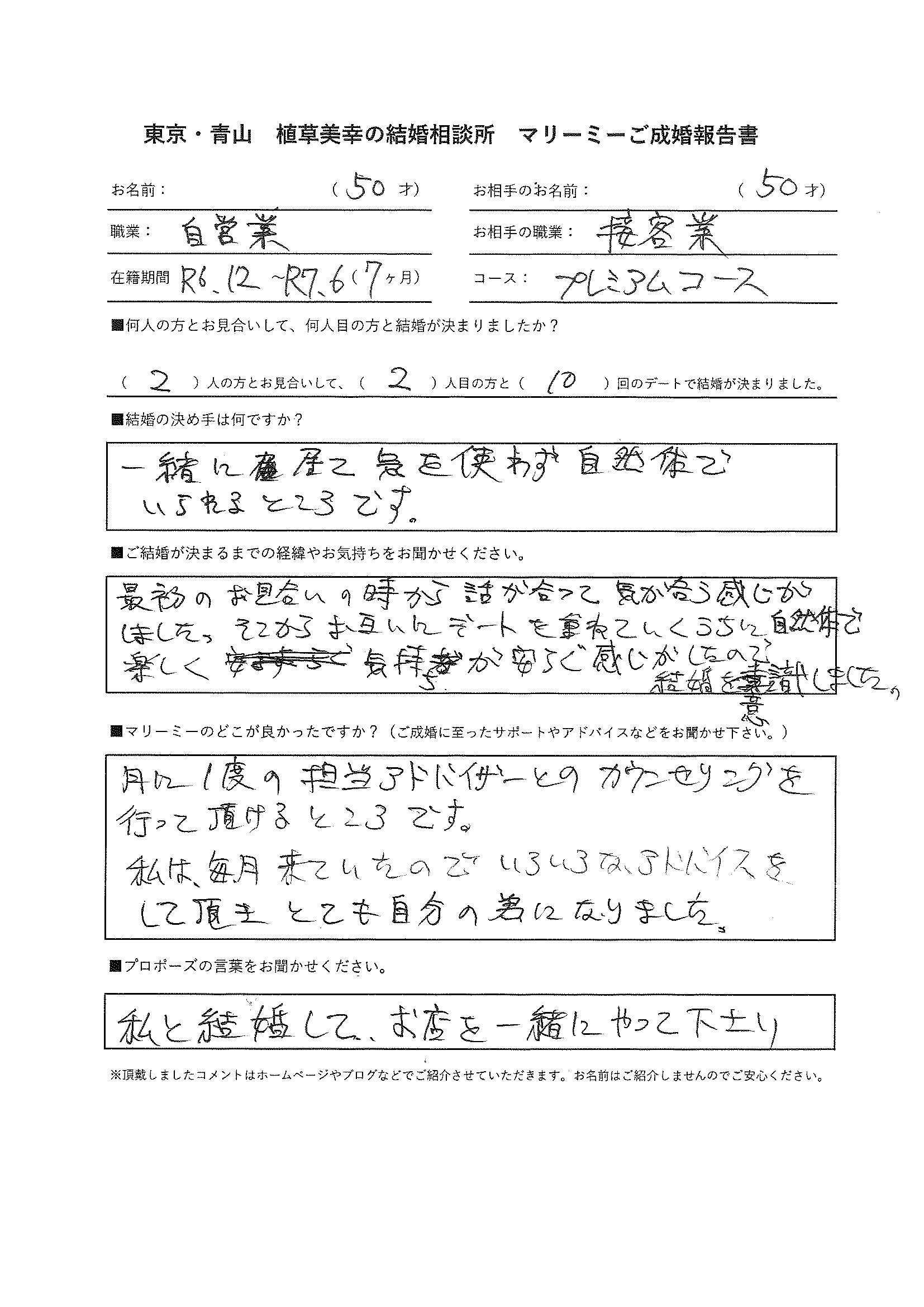 50歳男性自営業×50歳女性接客業のご成婚