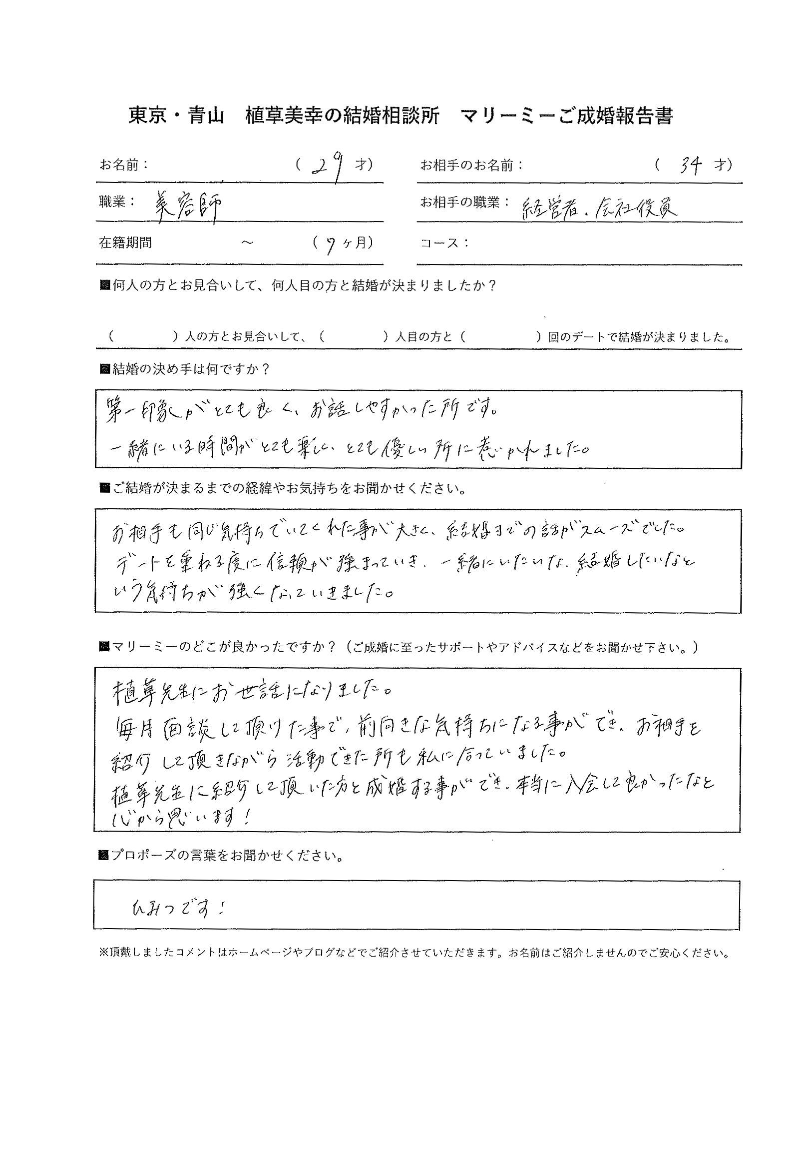 女性29歳 職業 美容師(植草美幸コース 活動期間7か月)