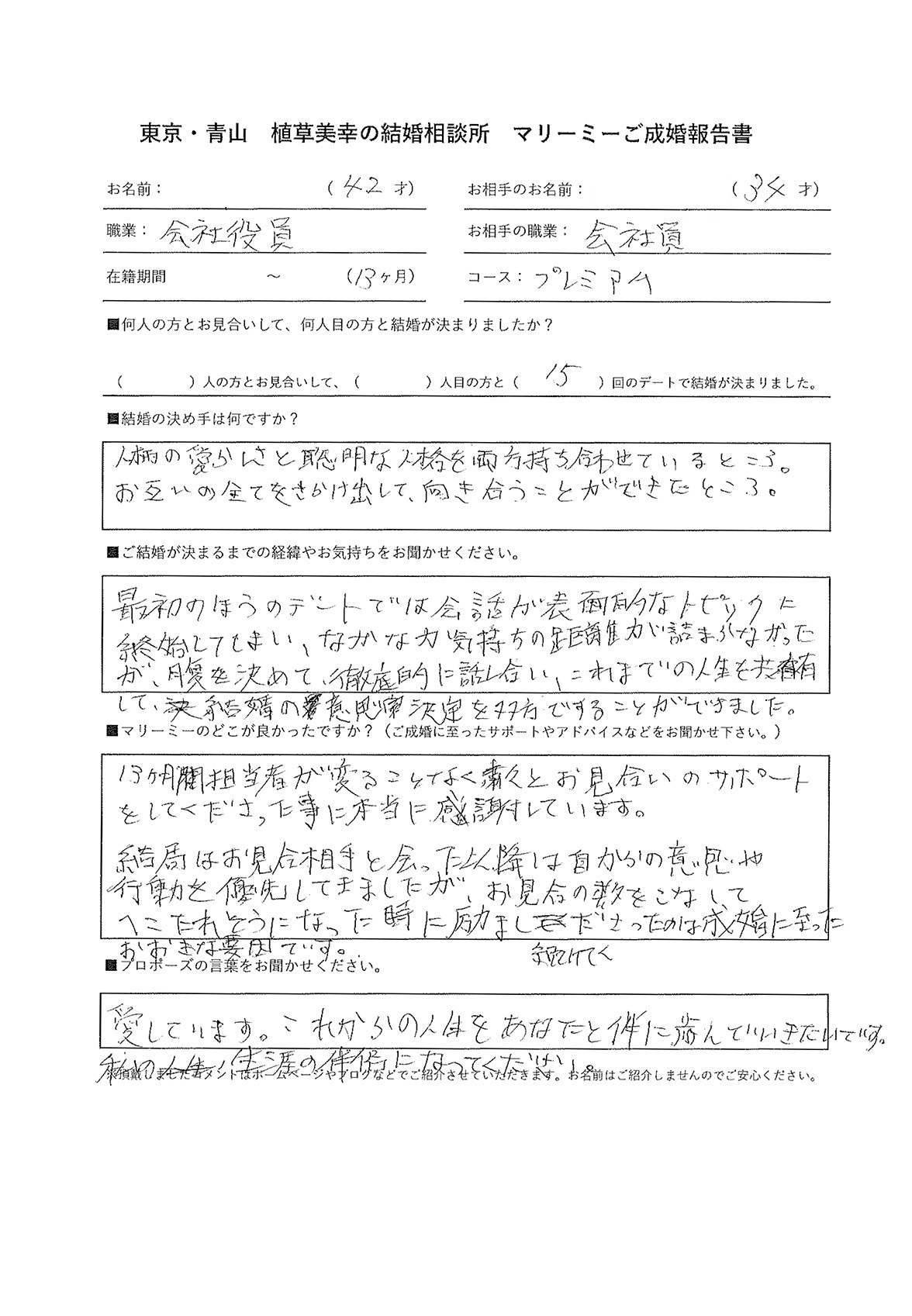 男性42歳 職業 会社役員(プレミアムコース 活動期間13か月)