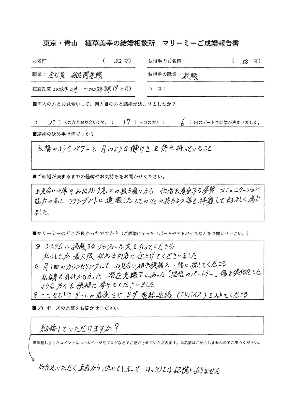 - ご成婚アンケート