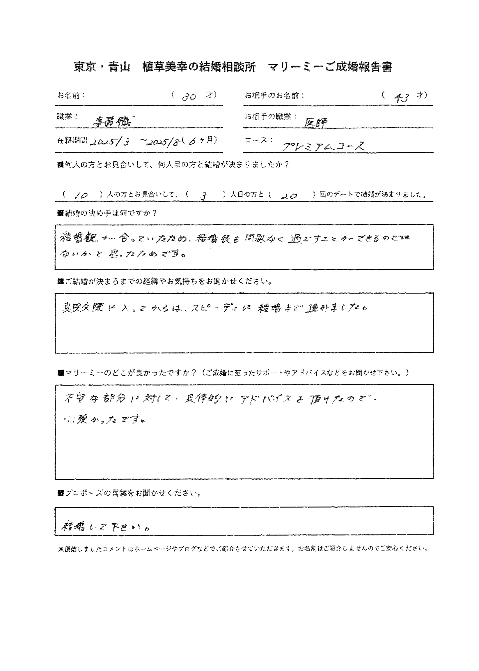 女性30歳 職業 事務職(プレミアムコース 活動期間6か月)