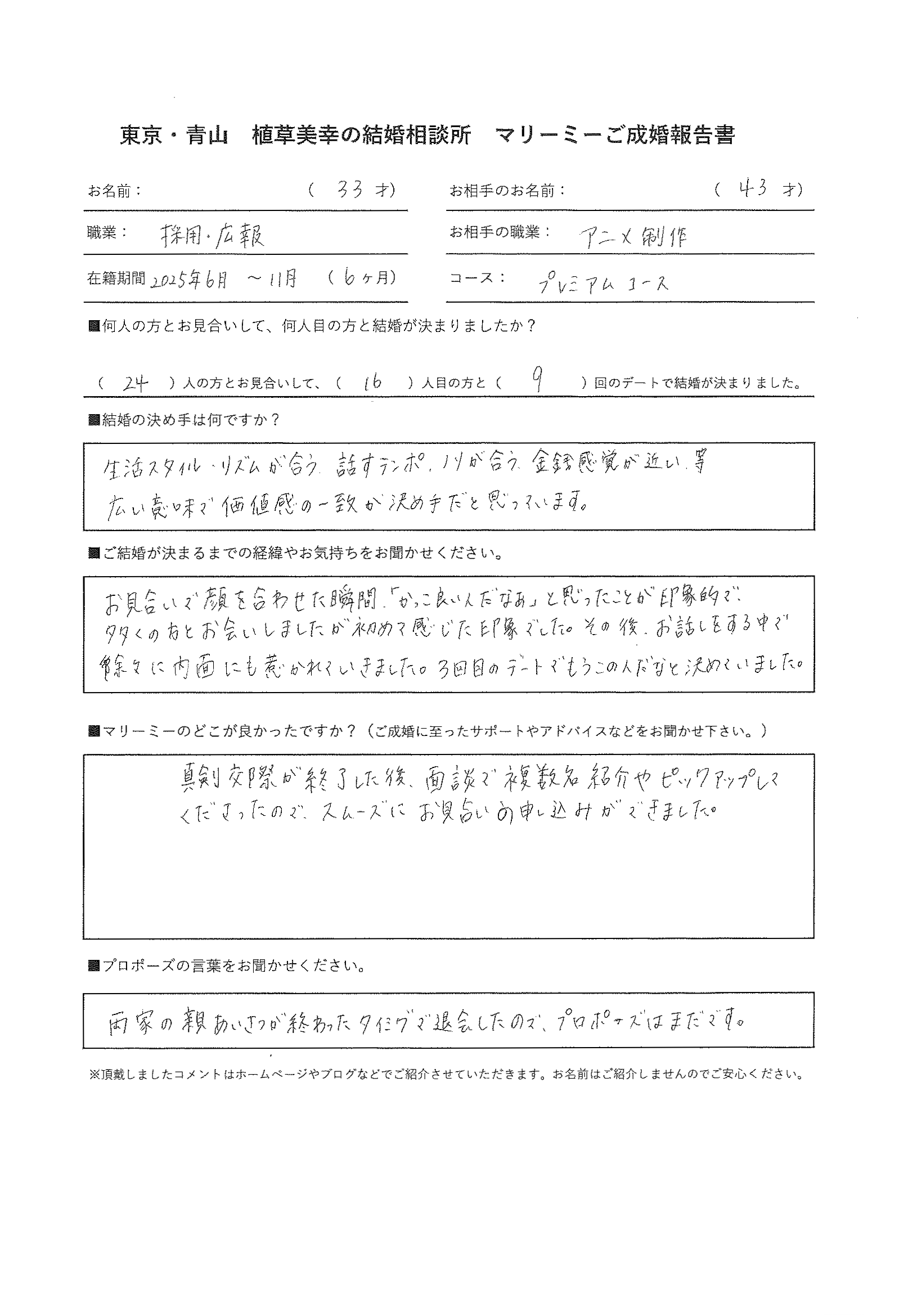 女性33歳 職業 採用・広報 (プレミアムコース 活動期間6か月)