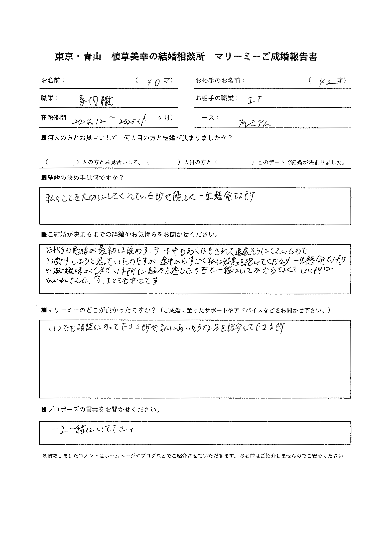 女性40歳 職業 専門職 (プレミアムコース 活動期間11か月)