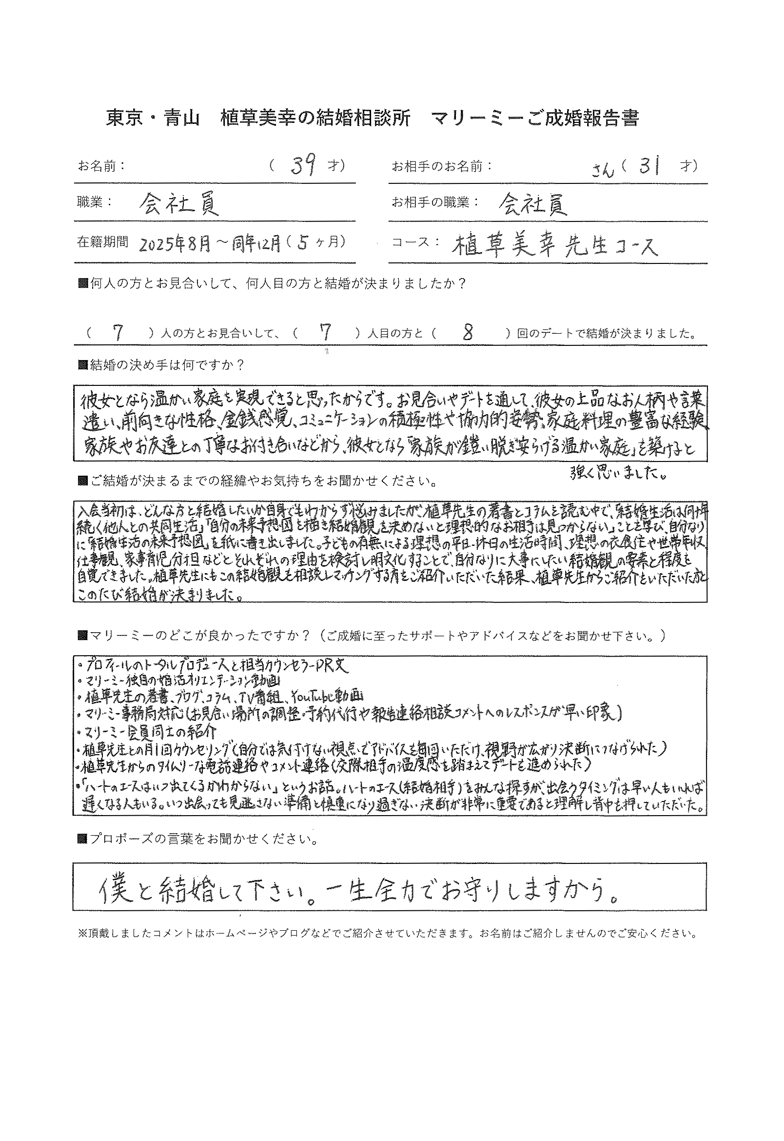 - ご成婚アンケート