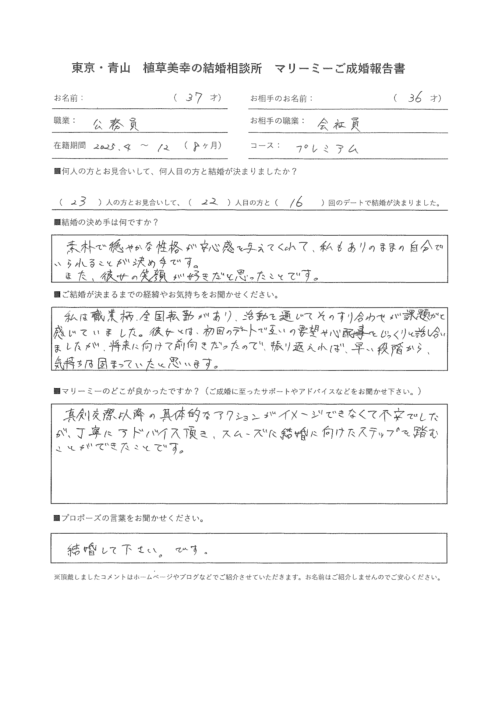 - ご成婚アンケート