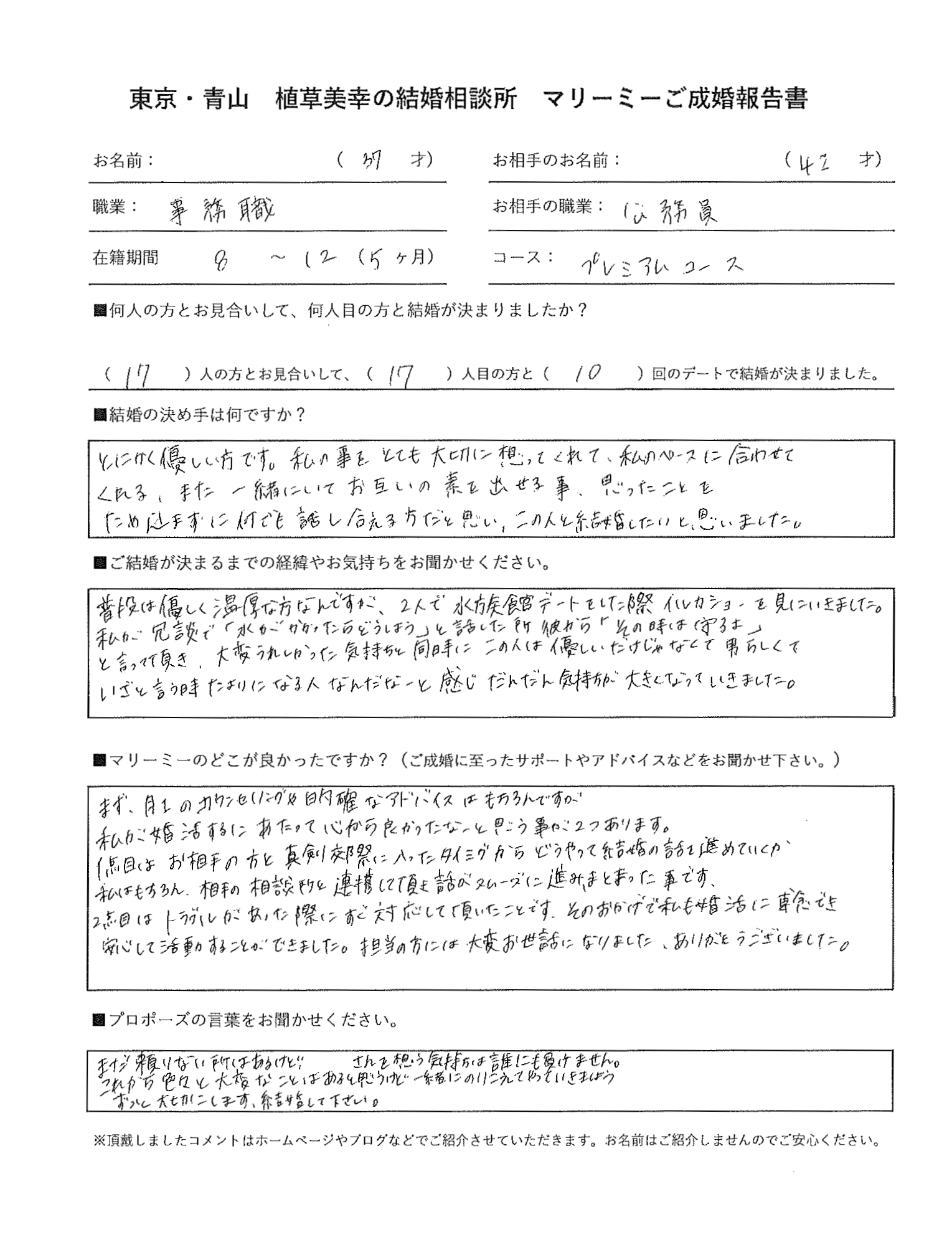 17 人の方とお見合いして 17 人目の方と 10 回のデートで結婚が決まりました。