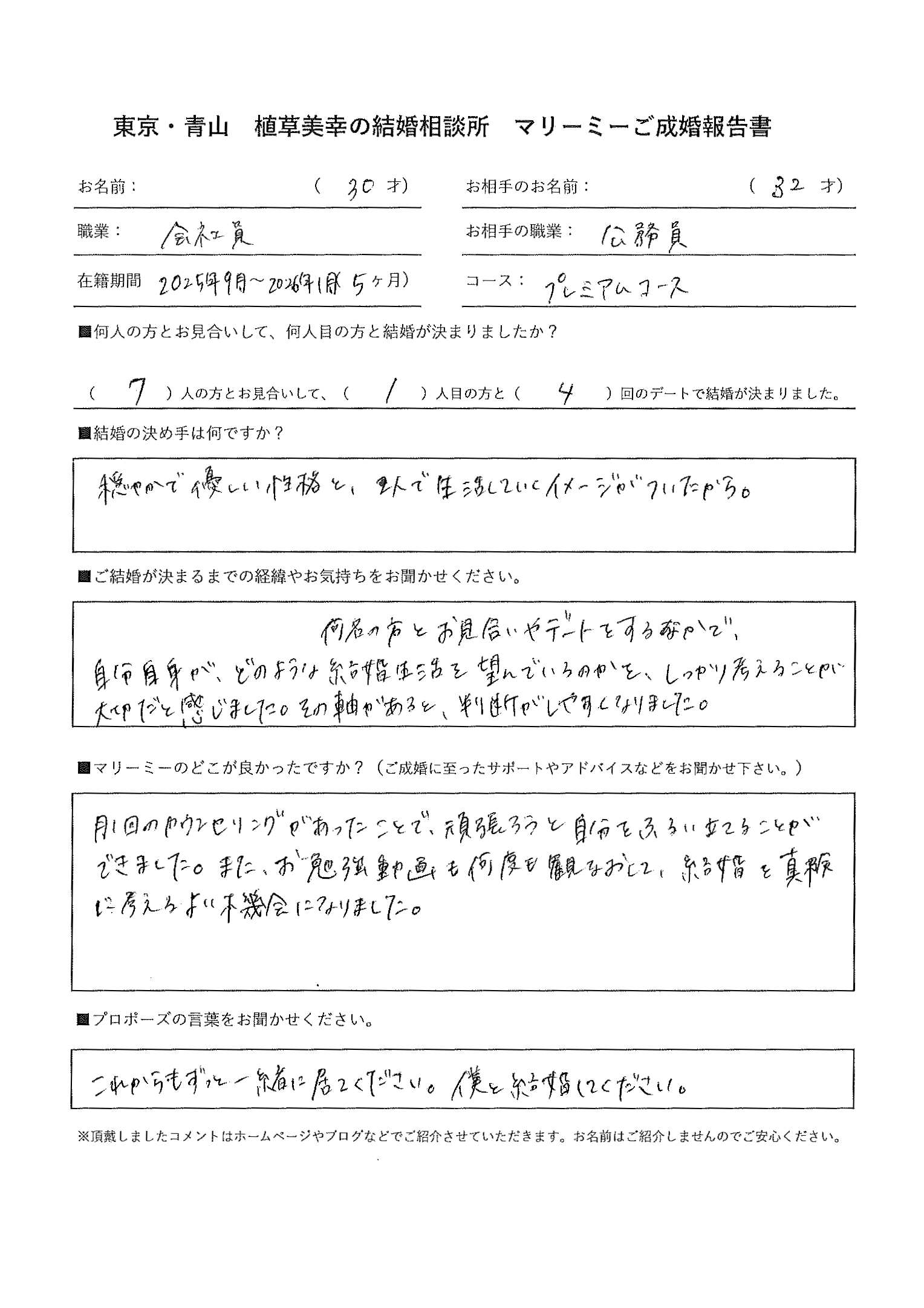 女性30歳 職業 会社員 (プレミアムコース 活動期間5か月)