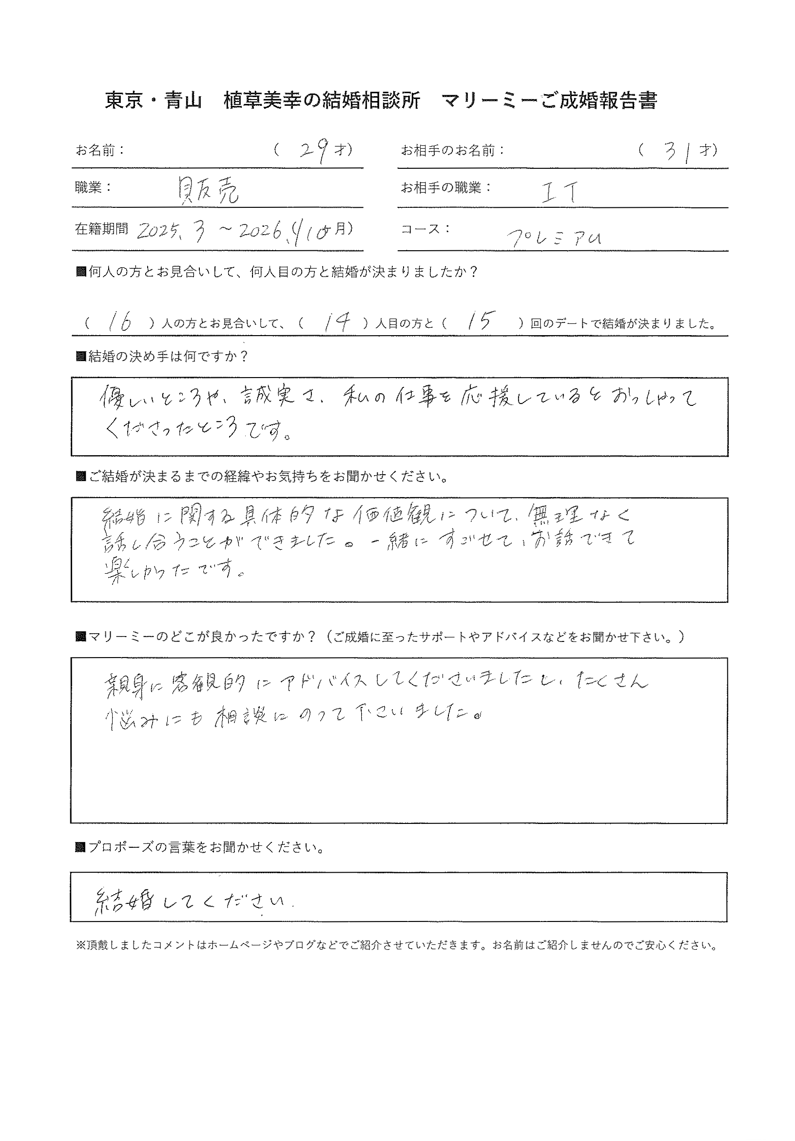 - ご成婚アンケート