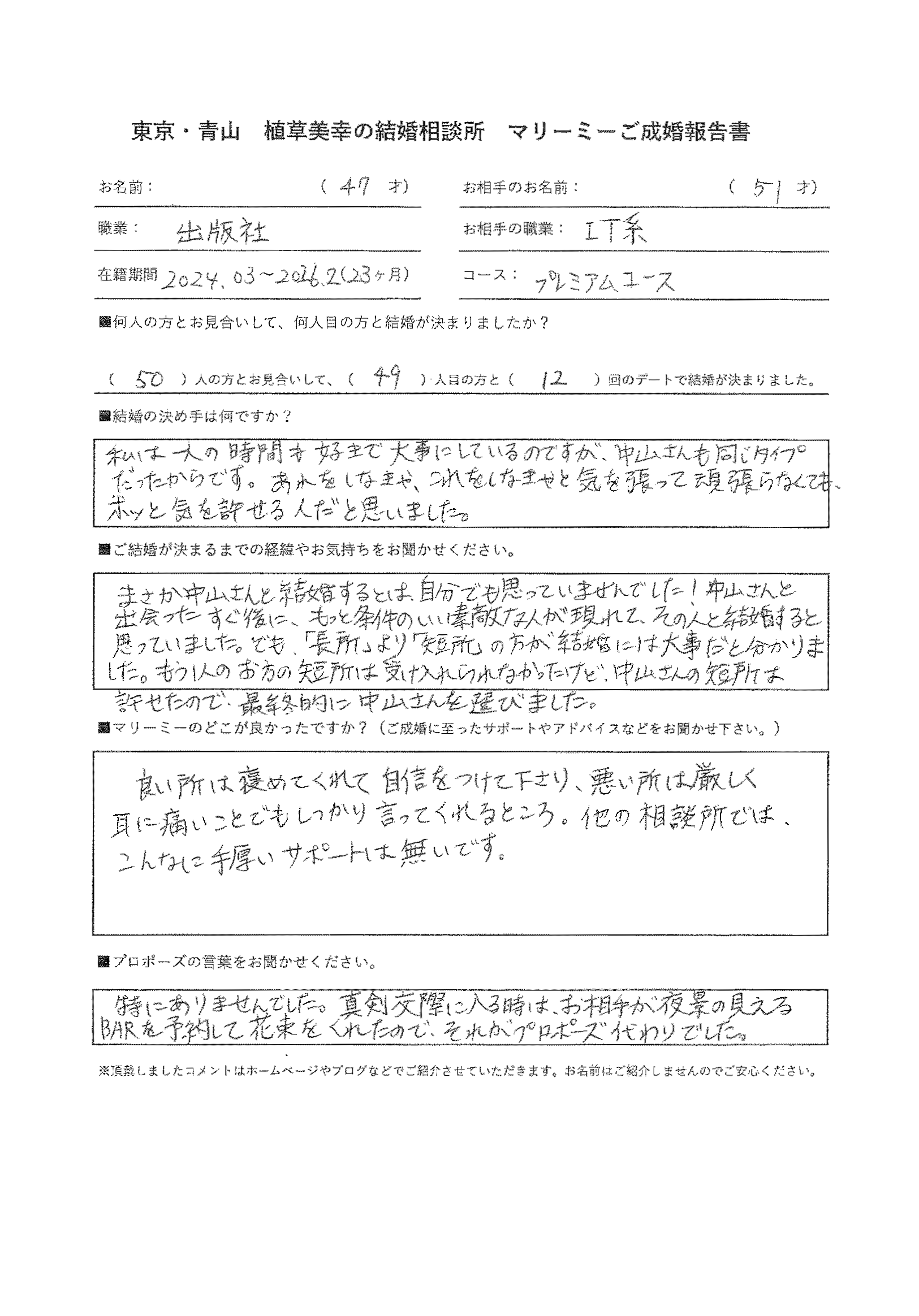 女性47歳 職業 出版社 (プレミアムコース 活動期間23か月)