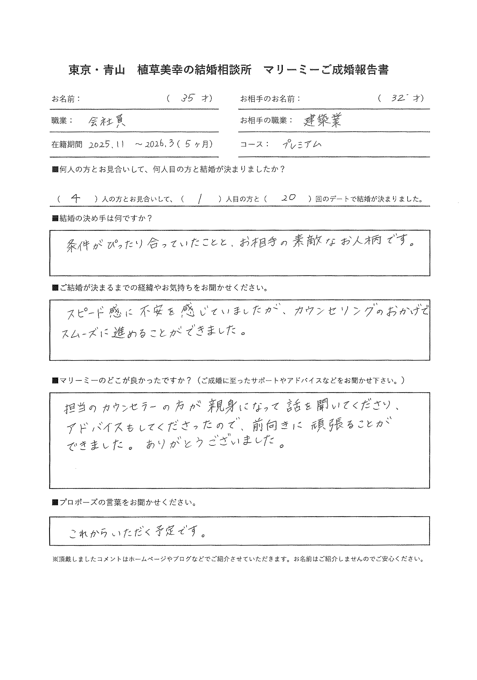 女性35歳 職業 会社員 (プレミアムコース 活動期間5か月)
