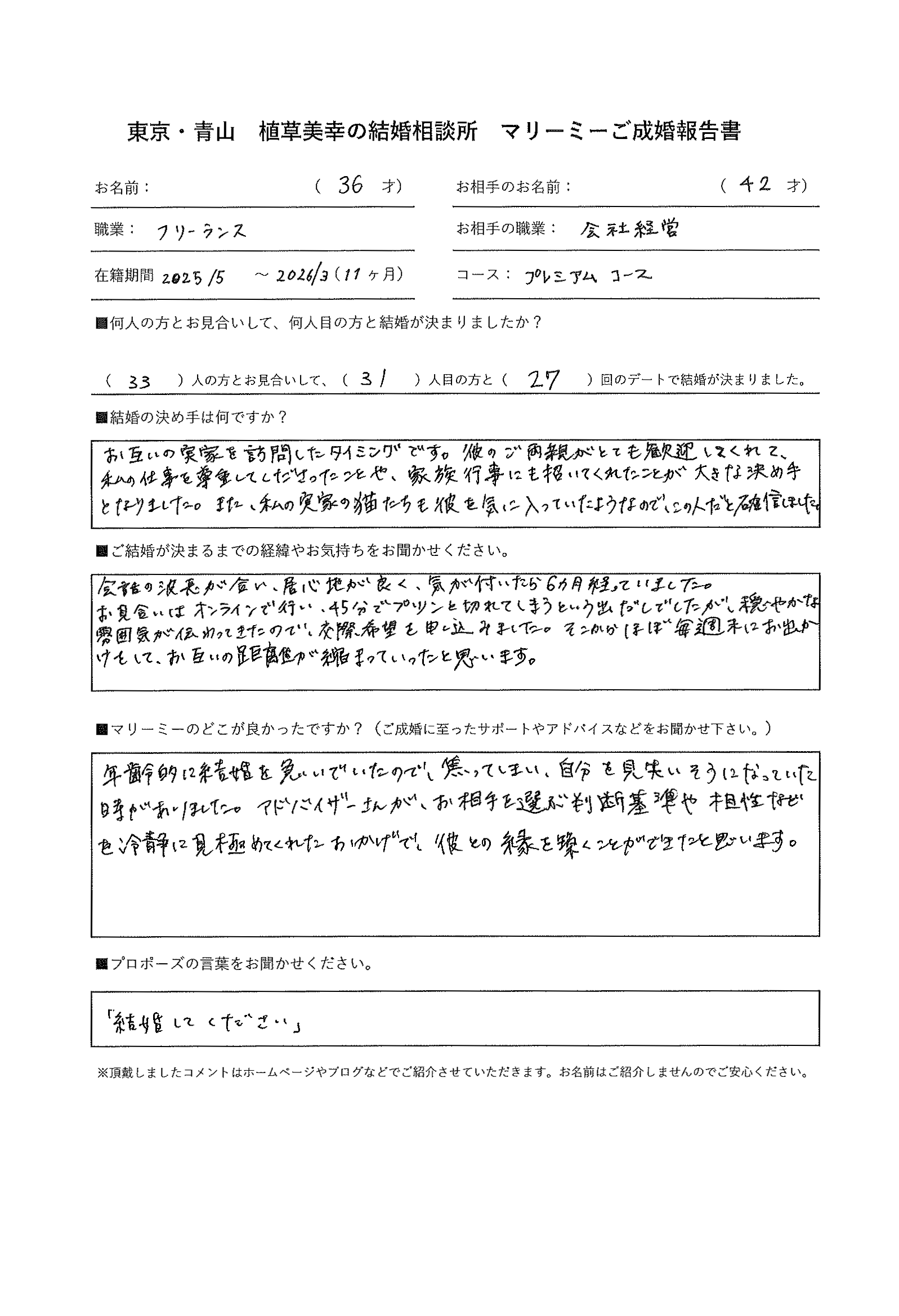 - ご成婚アンケート