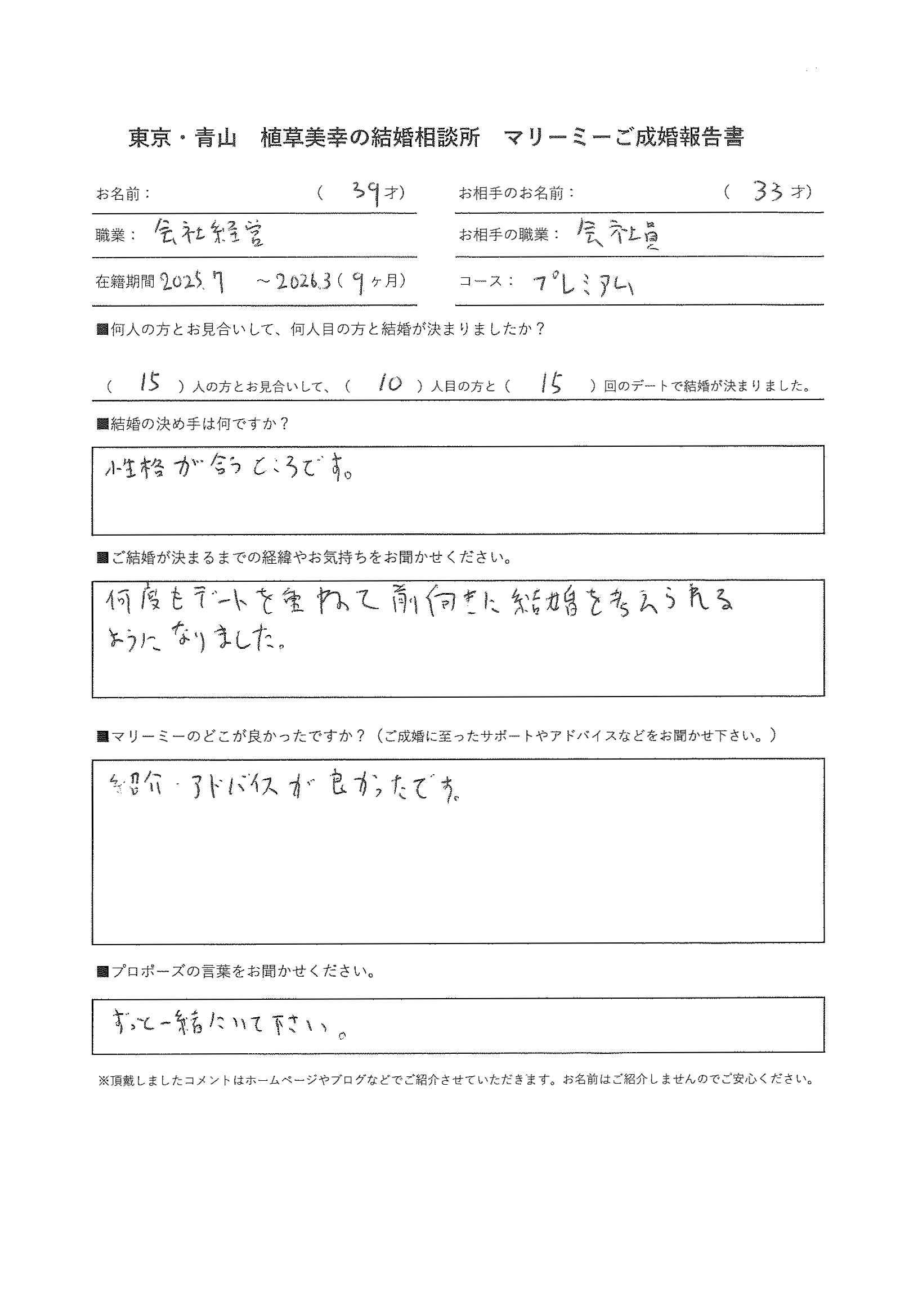 男性39歳 職業 会社経営 (プレミアムコース 活動期間9か月)