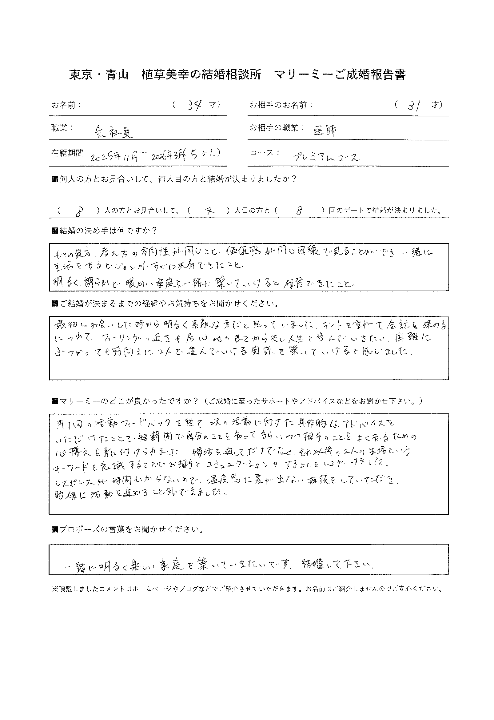女性31歳 職業 医師 (プレミアムコース)